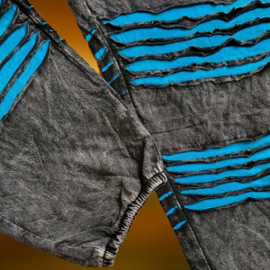 Na dole nogawek tkane, wiązane mankiety.